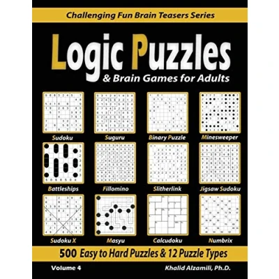 Logic Puzzles & Brain Games for Adults: 500 Easy to Hard 12 Puzzle Types (Sudoku, Fillomino, Battleships, Calcudoku, Binary Puzzle, ... Numbrix): 4 (Challenging Fun Teasers)