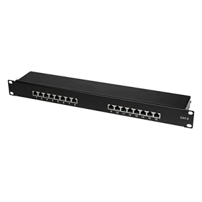 Amazon 19 inch wiring panel Cat.6 , 16 ports, STP , Black, Econline FABRE: RAL 9005 black
