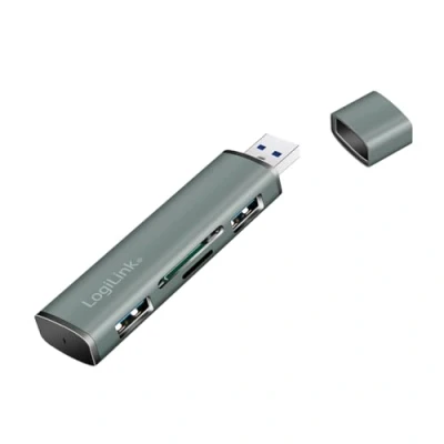 Logilink USB 3.2 (Gen2) 2 Port Hub with Card Reader for MicroSD and SD Cards, Aluminium Housing Protective Cap