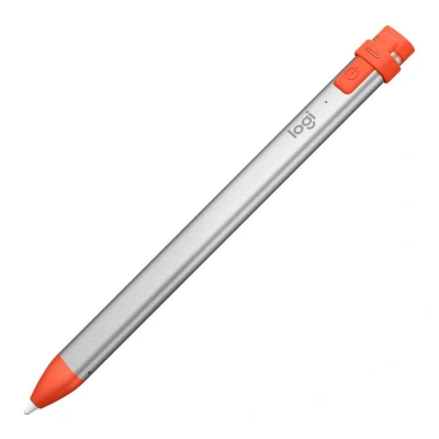 Logitech Crayon Digital Pencil for all iPads (2018 releases and later) with Apple technology, anti roll design, dynamic smart tip Silver/Orange