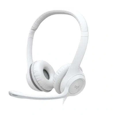 Logitech H390 Wired Headset for PC/Laptop, Stereo Headphones with Noise Cancelling Microphone, USB A, In Line Controls, Works Chromebook Off White