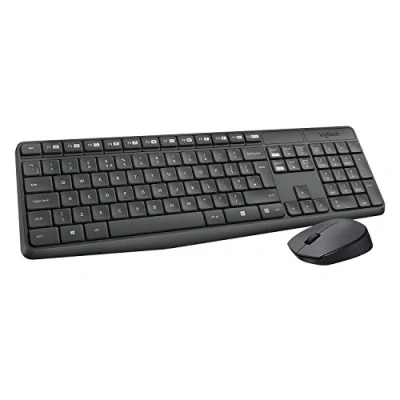 Full-size Keyboard: All the keys you need, with a full-sized keyboard layout, number pad and 15 shortcut keys; smooth, curved keys make for a comfortable, familiar typing experience. Ambidextrous Mouse: The compact, portable optical mouse is comfortable for both left- and rigt-handed users, and can be taken anywhere your work takes you Plug and Play: The included USB receiver provides a reliable wireless connection up to 10 m away (3); no need for pairing or software installation to use this keyboard mouse bundle Extended Battery: Say goodbye to the hassle of charging cables and changing batteries and get up to 3 years of battery life for the keyboard and 1 year for the mouse (1) with MK235 Durability: The keyboard of the Logitech MK235 wireless keyboard and mouse combo features a spill-proof design (2), anti-fading treatment and sturdy tilt legs Any Location, Any Occasion: This combo is a reliable and durable partner for your desk at home, or at work Upgrade to Logitech MK540 Combo: For increased comfort try MK540 wireless keyboard and mouse combo, with scooped keys, a palm rest, a full-size mouse with soft rubber grips and customisable shortcuts