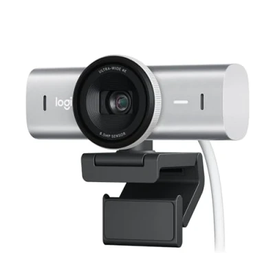 Logitech MX Brio Ultra HD 4K Collaboration and Streaming Webcam, 1080p at 60 FPS, Dual Noise Reducing Mics, Show Mode, USB C, Webcam Cover, Works with Microsoft Teams, Zoom, Google Meet Pale Grey