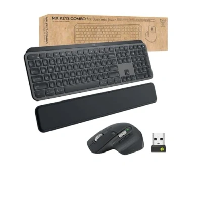 Logitech MX Keys Combo for Business Gen 2, Full Size Wireless Keyboard and Mouse, with Palm Rest, Bluetooth, Logi Bolt, Quiet Clicks, Windows/Mac/Chrome/Linux, QWERTY UK Grey