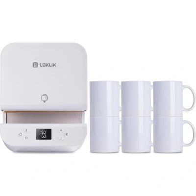 LOKLIK Impress Auto Tumbler Heat Press Mug Machine with 6 Pack Sublimation Mugs Set Printmaking Kit, Transfer Printing Shut Off White Craft Printer
