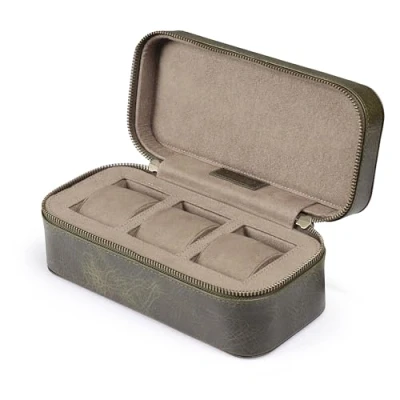 PREMIUM CRAFTSMANSHIP: Expertly crafted from genuine leather, this high quality watch box offers a luxurious and durable home for your cherished timepieces; designed to withstand daily use while maintaining its elegant appearance SUPERIOR PROTECTION: Safeguard your valuable watch collection with a robust and protective case, designed to shield each timepiece from dust, scratches, and damage; ensuring your watches remain pristine for years to come ELEGANT DISPLAY ORGANIZER: Present your elegant timepieces in this stylish and sophisticated watch organizer, doubling as a refined display holder for your dresser or collection; perfect for showcasing your unique assortment VERSATILE KEEPSAKE GIFT: An ideal gift for watch collectors, men, or women, this versatile storage solution is available in classic black, rich brown, or sophisticated green, complementing any home decor or personal style DURABLE TIMEPIECE STORAGE: Invest in a durable watch case that offers secure and long-lasting storage for your valuable collection; a timeless accessory designed to preserve your cherished timepieces as a true keepsake