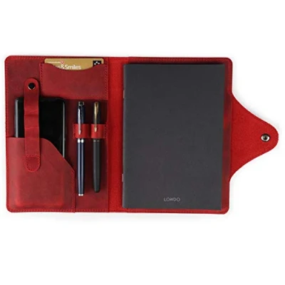 LONDO Genuine Leather Portfolio with Notepad and Snap Closure (Red, Large), OTTO422