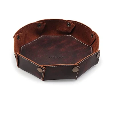 EXQUISITE LEATHER CRAFTSMANSHIP - The Londo Genuine Leather Round Tray Organizer is crafted with high quality, genuine leather attached with fine and durable stitching, giving it a sleek look and a durable body, combining the pleasant feel and the handsome look of leather without sacrificing versatility and convenience. PRACTICAL - The Londo Genuine Leather Round Tray Organizer stores your equipment conveniently while keeping them easily accessible. A practical and functional accessory for your home and office. DIMENSIONS - The Londo Genuine Leather Round Tray Organizer measures 7.48 x 7.48 x 1.96 inches (19 x 19 x 5cm). FUNCTIONAL DESIGN - Designed for daily use and helps you reach out your belongings easily. DURABLE - Londo Genuine Leather Round Tray Organizer is made of durable materials, durable and with strong stitching., Weight: 0.319670280168072 Pounds, Manufacturer: Londo