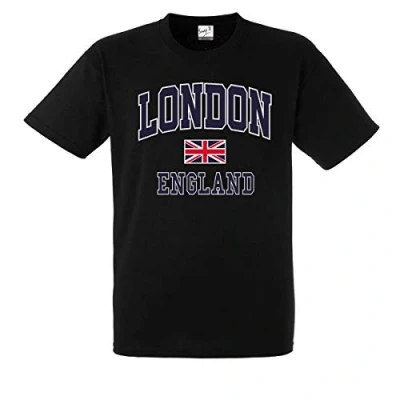 London England T Shirt with Union Jack Souvenir Printed Kids and Adults Unisex Tees (5 6 Years, Black)