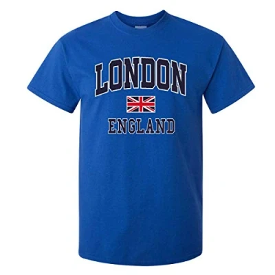 London England T Shirt with Union Jack Souvenir Printed Kids and Adults Unisex Tees (5 6 Years, Royal Blue)