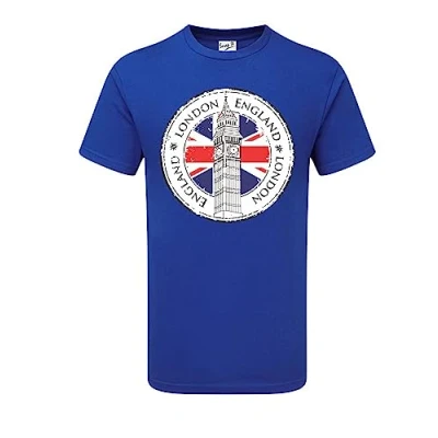 London England T Shirt with Union Jack Souvenir Quality Printed BigBen Tower Unisex Top Shirts. (as8, Alpha, l, Regular, Royal)