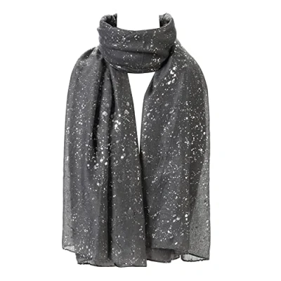 London Scarfs Silver Gold Glitters Shimmer Foil Stars Women Scarf Shawl Wrap (Silver Sparkle Grey)