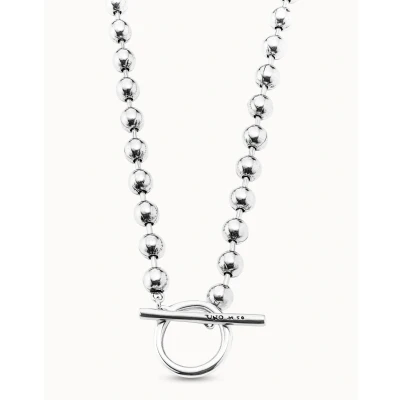 Midi sterling silver-plated necklace with multiple beads and a clasp with a bar and a ring with our logo engraved on it. Dare to wear this unique jewelry 100% handmade by UNOde50 in Spain.