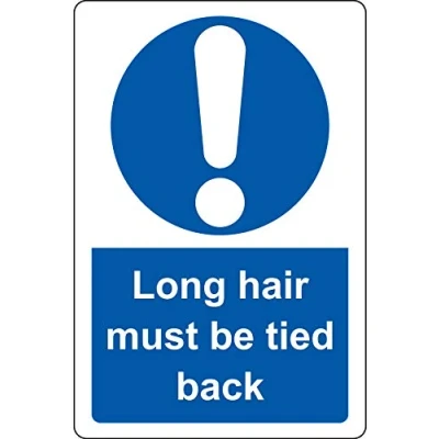 Long hair must be tied back Safety sign 1.2mm Rigid plastic 200mm x 150mm Digitally printed for extra durability Drill and screw in position or use double sided tape to mount onto suitable surface., Manufacturer: KPCM Display ltd