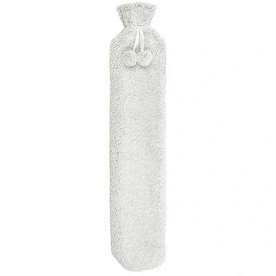 Long Hot Water Bottle Luxury Grey Sherpa Fleece Cover 2 Litre