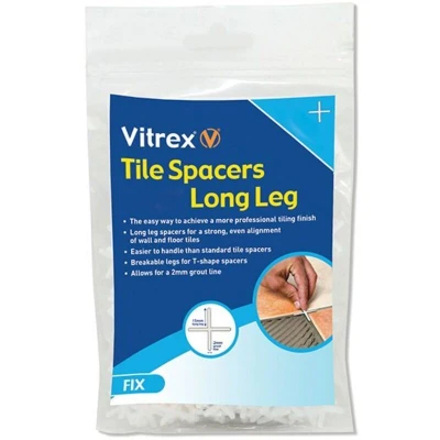 General description These Vitrex Long Leg Spacers provide an easy way to achieve a professional tiling finish by ensuring consistent and even spacing between tiles. They allow for a 2mm grout line, resulting in a neat appearance. Technical specifications Size: 2mm Pack Size: 2000 pieces MPN: LLS22000 EAN: 5011204614462 Compatibility and accessories Suitable for use with various tiles and surfaces requiring 2mm grout lines Installation Place the spacers between tiles during installation to maintain consistent spacing Use the breakable legs to create T-shaped spacers if needed Remove the spacers after the adhesive or grout has set Usage Ideal for professional tiling projects to ensure uniform grout lines Handle with care to avoid damaging the breakable legs Other information