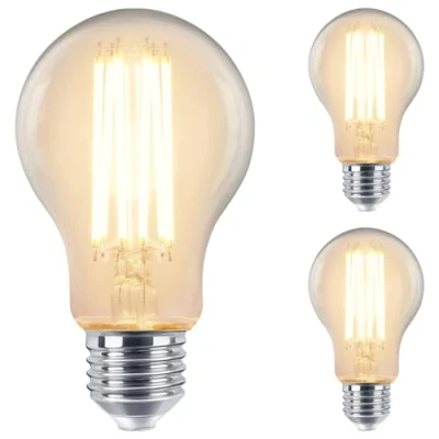 3000k Warm White 3 pack 10W LED Filaments Dimmable Clear Glass A60 shape E27 Cap Warm white is a softer light as compared to white, Weight: 0.07275254646 pounds, Manufacturer: Long Life Lamp Company