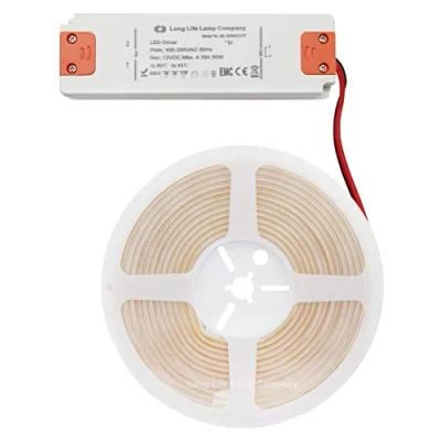 Long Life Lamp Company IP65 Water Proof Outdoor & Indoor LED Strip Light Tape Warm White Continuous COB Illumination 5 Metres 12v
