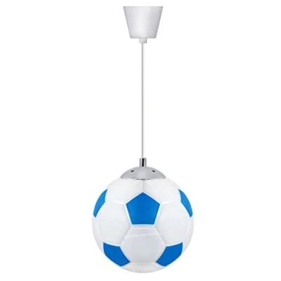 Unique Football Design Ceiling Pendant Light Shade Fixture In Blue And White With Chrome Top Looks Cool When Turned On or Off Requires E27 bulb (not included) Can Take LED If You Require More Light Use LED 10w equal A60 E27 Built From Robust Material Ideal For Football Fan Rooms, Games Rooms, Childrens Rooms