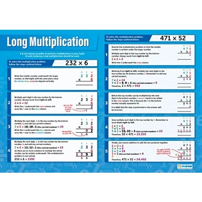 Long Multiplication Maths Charts Gloss Paper measuring 594 mm x 850 (A1) Math for the Classroom Education Posters by Daydream