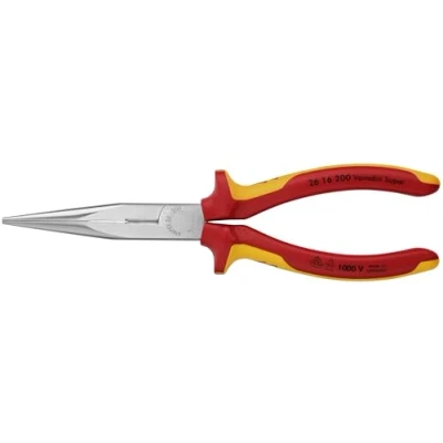 KNIPEX Tools Long Nose Pliers with Cutter, Chrome, 1000V Insulated (2506160)