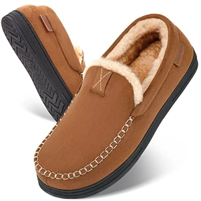 Simply & Classic Moccasin Style-Micro suede upper with traditional moccasin design for a classic appearance enhances the comfort and warmth for your feet in chilly winter. The unique X line decoration on upper make them different from other moccasin slippers Warm & Quality-Thicker faux fur lining keep you entire feet from heel to toe warmth and just like be wrapped in a cloud all winter. The closed back heel perfectly combines the safety and fit of an indoor and outdoor shoes with the comfort of a slipper Cushioning & Support-High density 70D memory foam cushions your every step and feels like ergonomic pillows under your feet. Supportive insole relaxes your arch and soothes common foot pains (e.g. plantar fasciitis) from all-day walking or standing Non-slip Rubber Sole-sturdy rubber sport sole provides waterproof and non-skid traction. So you can wear them freely at home in living room or bedroom. You can also step outside the house to fetch the morning paper or check the mailbox without switching shoes Sizing Tip-These casual slipper boots slippers come in 6 sizes (size 7, 8, 9, 10, 11, 12) could fit most standard and wide feet. If you are between sizes (such as size 9.5, 10.5, 11.5, etc.), please get the next size up. May feel snug at first due to the memory foam, allow the insole to compress a bit and they will fit better