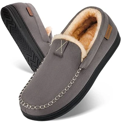 Simply & Classic Moccasin Style-Micro suede upper with traditional moccasin design for a classic appearance enhances the comfort and warmth for your feet in chilly winter. The unique X line decoration on upper make them different from other moccasin slippers Warm & Quality-Thicker faux fur lining keep you entire feet from heel to toe warmth and just like be wrapped in a cloud all winter. The closed back heel perfectly combines the safety and fit of an indoor and outdoor shoes with the comfort of a slipper Cushioning & Support-High density 70D memory foam cushions your every step and feels like ergonomic pillows under your feet. Supportive insole relaxes your arch and soothes common foot pains (e.g. plantar fasciitis) from all-day walking or standing Non-slip Rubber Sole-sturdy rubber sport sole provides waterproof and non-skid traction. So you can wear them freely at home in living room or bedroom. You can also step outside the house to fetch the morning paper or check the mailbox without switching shoes Sizing Tip-These casual slipper boots slippers come in 6 sizes (size 7, 8, 9, 10, 11, 12) could fit most standard and wide feet. If you are between sizes (such as size 9.5, 10.5, 11.5, etc.), please get the next size up. May feel snug at first due to the memory foam, allow the insole to compress a bit and they will fit better
