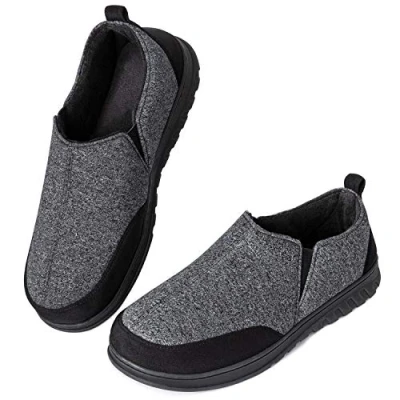 Breathable and Stylish Design:Sportive and modern design clog slipper.Ultra soft and breathable quilt jersey joint fashionable Satin upper optimize temperature to keep feet comfy and well-ventilated. The moisture-wicking micro terry lining can dry out quickly after shower Unique dual elastic gores:Considerable back loop design are easy to slip on and off, stretchable side elastic details can adapt your fit well and secure fit while you are climbing up and down stairs Pillow Comfort Memory Foam:Long lasting 80D memory foam insole provides superior cushioning and padding, feels like ergonomic pillows under your feet. Supportive insole relaxes your arch and soothes common foot pains from all-day walking or standing Versatile Style:These home slippers are not just a great choice for indoor home slipper.The non-slip rubber sole keep water off and dampness from absorbing into these home shoes and provides you with all the flexibility and support you need,making you walk steadily outdoors 【Perfect Gift & Size Tips】: Colors are available in black, light grey, blue navy. suitable standard size for all men in size 6-7,size 8-9,size 10-11,size 12-13. If you are between sizes (such as size 7.5,9.5,11.5 etc.), please get the next size up. Great gift for father, brother, boyfriend, grandpa or your loved ones