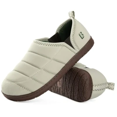 LongBay Men's Outdoor Slippers Memory Foam Camping shoes Nylon Non Slip Indoor Beige, 11