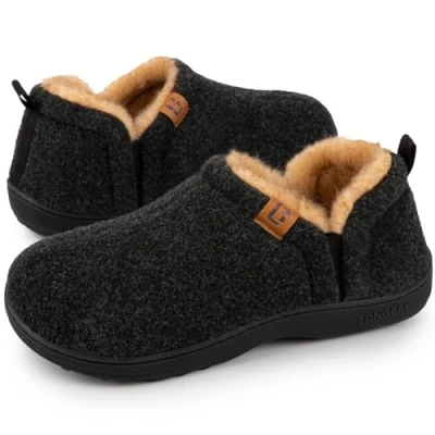 LongBay Men's Warm Memory Foam Slippers Home House Indoor Outdoor Anti Slip Winter Shoes Black, 10/11 UK