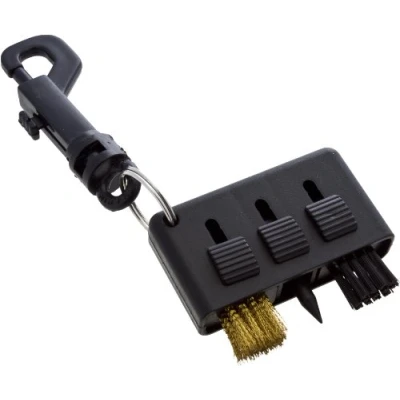 Contains 3 retractable tools for clutter-free maintenance Brass brush for irons Nylon brush for gentle cleaning of your woods Groove cleaner for woods and irons allows you to remove debris from your grooves and improve backspin Belt clip attaches the device to your belt, bag or key-ring
