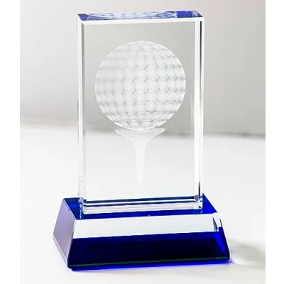 Crystal trophy 3D Etching of Golf ball and tee 100mm height