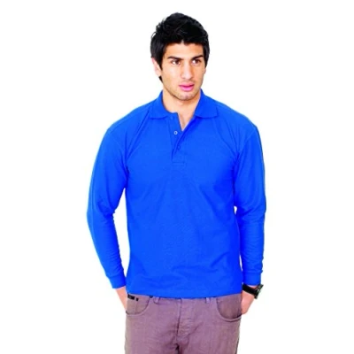 50% Polyester 50% Cotton Long Sleeve Reactive Dyed Knitted Raised Collar & Plain Cuffs Taped Neck Side Vents with Extended Back Washable at 60 Degrees 3 Self Coloured Button Placket