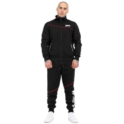 Cool jogging suit from Lonsdale Regular fit Made from high quality blended fabric Practical zip pockets With different logo prints