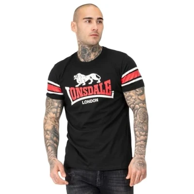 Lonsdale Men's Hempriggs T Shirt, Black/red/White, XXL
