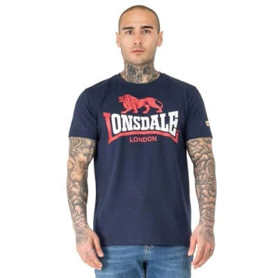 Lonsdale Men's Lion Two Tone T Shirt, Navy/Red/White, M