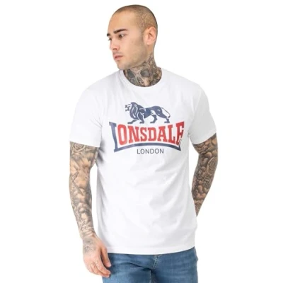 Lonsdale Men's Lion Two Tone T Shirt, White/Navy/Red, XL