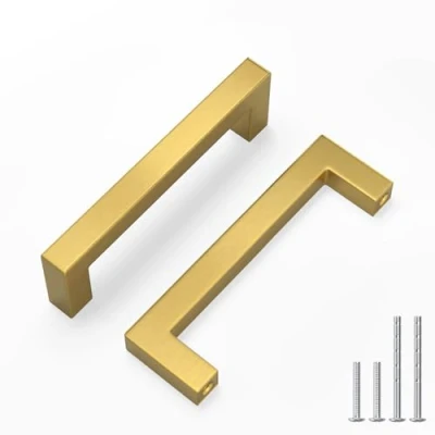 LONTAN Gold Cabinet Pulls Kitchen Door Handle LSJ12GD90 Brushed Brass Drawer 90mm Hole Center Modern Square Cupboard Handles Hardware Dresser Knobs 5 Pack