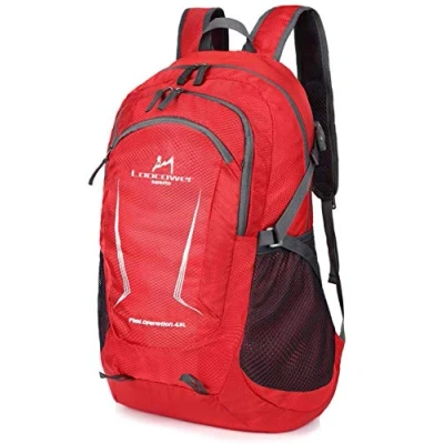 Loocower 45L Ultra Lightweight Foldable Backpack Hiking Daypack Walking Rucksack Water Resistant Packable Camping Mountaineer Outdoor Sport Knapsack for Men Women Red