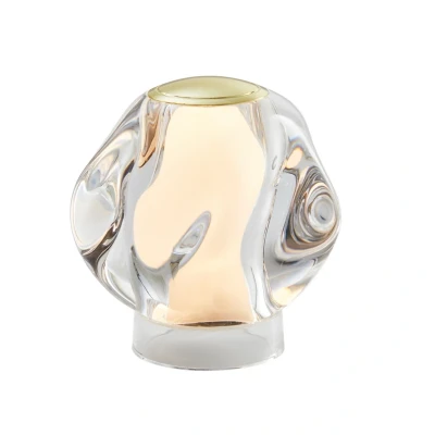 Lights.coDecorative LED table lamp Ice Ball with rechargeable battery and dimming function The lampshade of the Ice Ball table lamp is a spherical body made of clear acrylic that appears to be melting like ice. The warm white light from the LED light source, which is located inside a satin-finished inner diffuser, is refracted irregularly by the acrylic, creating an appealing optical effect. There is also a metallic detail on the top. Thanks to its rechargeable battery, the Ice Ball LED table lamp can be placed anywhere. - Button with three-stage dimming function - Burn time: 7 hours at 100%, 11 hours at 60%, 32 hours at 20% brightness - Charging time: 7 hours - Includes USB-C charging cable (power adapter not included)