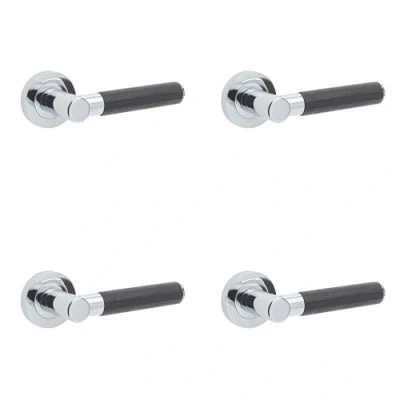 Loops 4 Pack Elegant Black Leather Door Handle with Polished Chrome Finish Interior