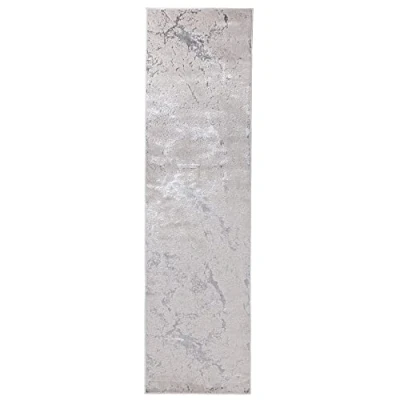Lord of Rugs Aurora AU03 Solar Silver Grey Modern Shiny Abstract Marbled Pattern Rug Hallway Runner (66x240cm (2'1''x7'10'') Runner)