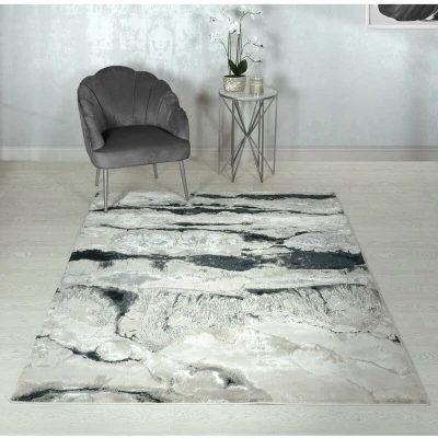 General description The Aurora Quartz AU05 rug features a lustrous pile with a stunning marble effect in silver, grey, and black tones, making it a perfect addition to any interior for an opulent style. Its contemporary design serves as a sensational centerpiece in both living rooms and bedrooms. Technical specifications Material: 65% polyester, 35% polypropylene Pile weight: 1.26 kg/m² Dimensions: 80x150 cm (2'6"x5') Available sizes: 80x150 cm, 120x170 cm, 160x230 cm, 200x290 cm, 240x340 cm Other information Power loomed for durability Super soft and easy to clean Anti-shed and very hard-wearing