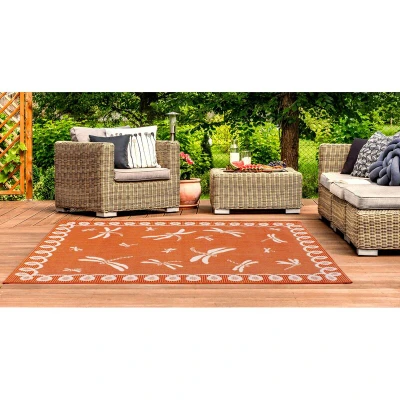 Lord of Rugs Terrace Dragonfly Outdoor Rug for Garden, Patio, Living Room, Indoor, Kitchen, Balcony, Picnic, Bedroom Bordered Lightweight Mat Flatweave Terracotta Medium 120x170 cm (4'x5'6")