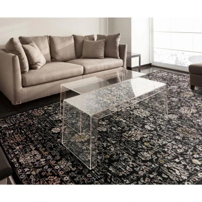 General description The Black Floral Traditional Rug is a modern interpretation of classic Persian designs, crafted in Turkey. It features muted and distressed patterns with a lush sheen, making it a striking focal point in any room. This rug is designed to be hardwearing, stain-resistant, anti-shedding, and antistatic, ensuring durability and ease of maintenance. Technical specifications Material: 100% Polyester Dimensions: 120 x 166 cm (4' x 5'5') Usage Ideal for placement in living rooms under coffee tables, hallways for contemporary appeal, or as a bedside rug in bedrooms. Can be vacuumed regularly with any type of vacuum suction. Easy to clean without the need for special equipment.