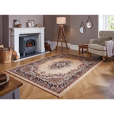 AmazonLord of Rugs Traditional Rug for Living Room Bedroom Kitchen Hallways Lounge Carpet Lancashire Floral Medallion Oriental Rug Berber Beige Medium 120x160 cm (4'x5'3")