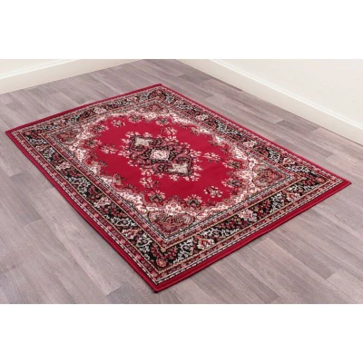 General description The Traditional Poly Lancashire Oriental Rug in Red is a stunning addition to any home, featuring a classic and elegant design that complements both traditional and contemporary interiors. Its eye-catching traditional pattern, complete with a central motif and intricate border, enhances the aesthetic of any room. Technical specifications Material: 100% polypropylene Dimensions: 80 x 150 cm (2'6" x 5'0") Pattern: Bordered, Floral Usage This durable rug is designed for high traffic areas, making it perfect for homes with children and pets. It maintains its appearance even under heavy use, ensuring it remains a beautiful focal point in your space. Other information Care Instructions: Vacuum with no attachment, just suction; shake thoroughly outside.