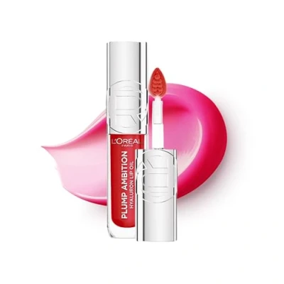 Luxurious lip treatment that hydrates and enhances your lips with a blend of Hyaluronic Acid and Tripeptides, Results in a smoother, plumper appearance while providing an irresistible shine Beautifully fuller lips that look and feel rejuvenated, With a magnifying glass-like shine finish, Lips that make a bold statement with every application Designed for easy use: Simply outline your cupid’s bow and apply from the centre of your lips, Blend outwards for a flawless finish, Boost the plumping effect with an extra dab in the centre for added volume Infused with Hyaluronic Acid and Tripetides, Lip oil features a refreshing cooling mint formula and is buildable for customisable colour, Unique blend not only enhances the appearance of lips but also nourishes and hydrates for lasting comfort throughout the day Contents: 1x L'Oreal Plump Ambition Hyaluron Lip Oil, High-shine finish, Plumping Lip Colour Gloss, Shade: 380 Rouge in Love