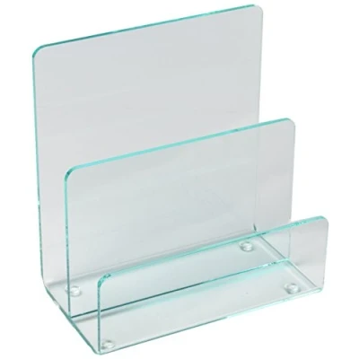 Mini sorter features a durable, lightweight design with polished edges. Smooth, curved edges feature a hint of green to emulate the look of real glass. Nonskid feet protect desktop surfaces and keep your important papers on your desktop. Each slot offers a 2-1/2" depth. Mini sorter is made of durable acrylic. Nonskid feet protect desktop surfaces and keep your important papers on your desktop.