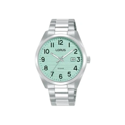 This watch from the Lorus Men’s collection features a timeless classic design Light green pressed pattern textured dial Clear Arabic numerals, semi-luminous hands, and a date window. Stainless steel case and bracelet, it ensures durability making it both stylish and practical. 100M Water Resistant